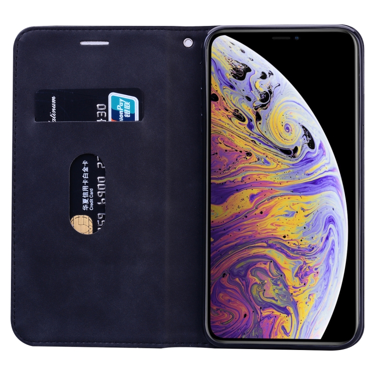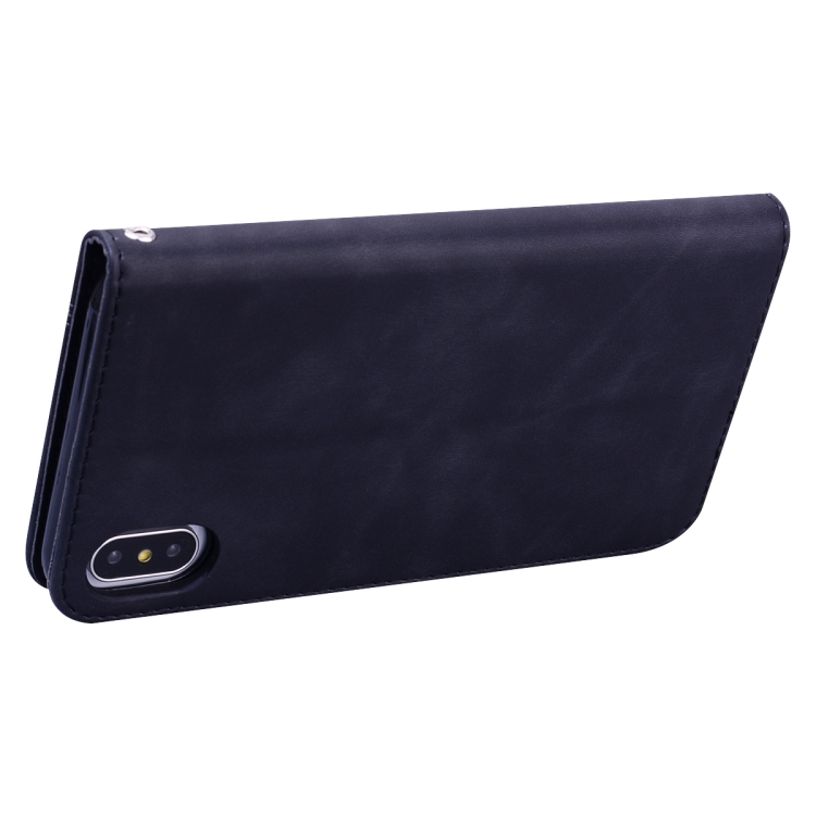 Funda para iPhone Xs Max Cuero de PU con Tapa Horizontal Magnética Soporte Ranura para Tarjeta y Cordón (Negro)