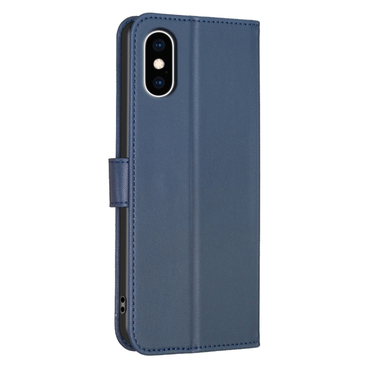 Funda para iPhone Xs Max Cuero con Relieve Cuatro Hojas (Azul)