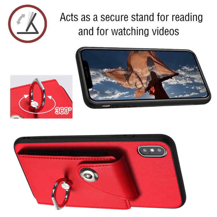 Funda para Teléfono iPhone Xs Max con Soporte para Anillo y Bolsa para Tarjeta (Rojo)