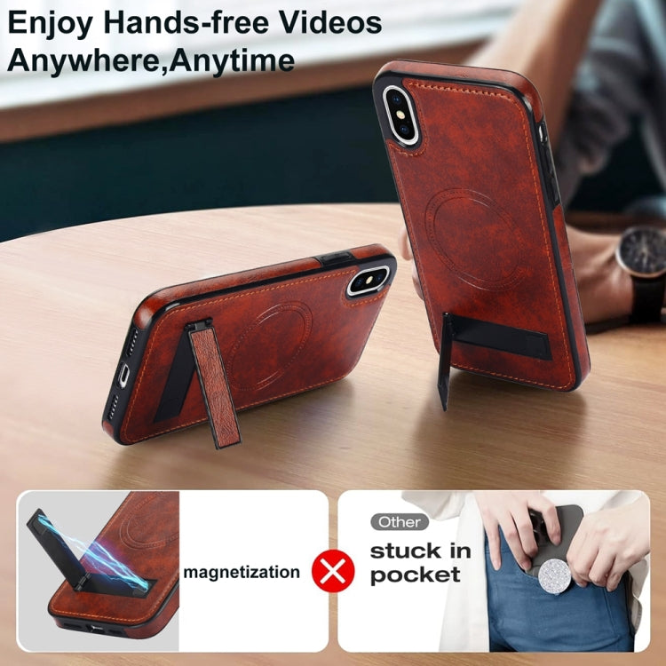 Funda para Teléfono iPhone Xs Max Magsafe Soporte Invisible Cuero Retro (Marrón)