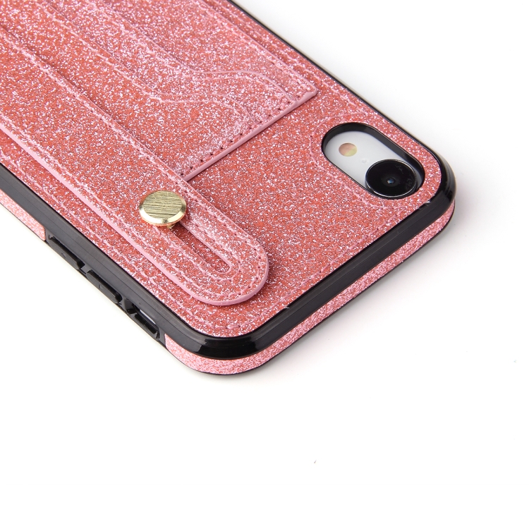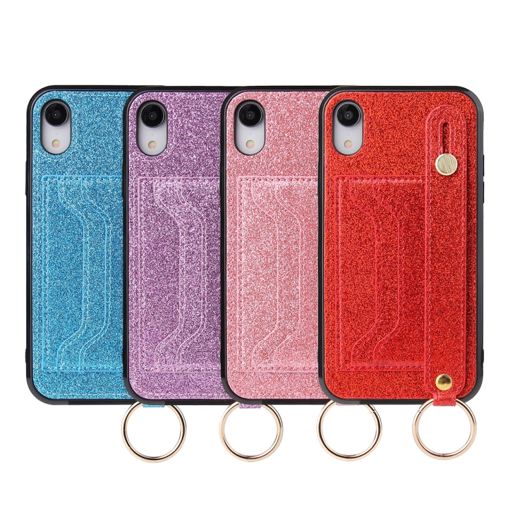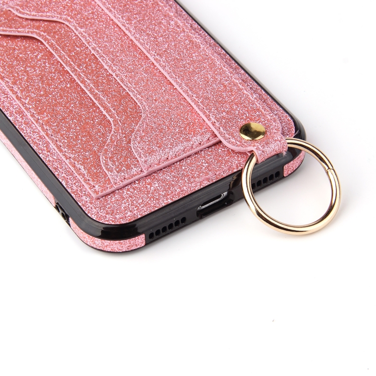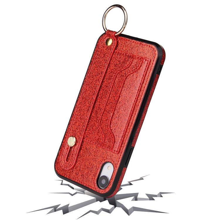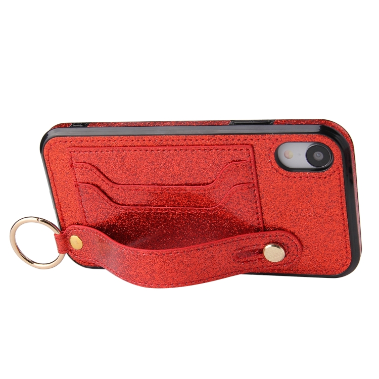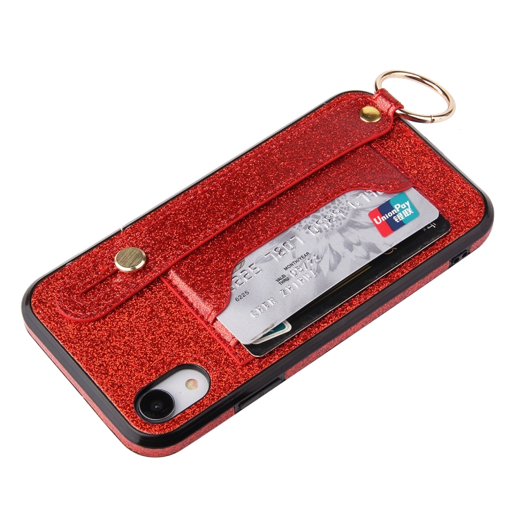 Estuche protector para iPhone Xs Max PU Glitter Powder + TPU con soporte y ranuras para tarjetas y correa (Rojo)
