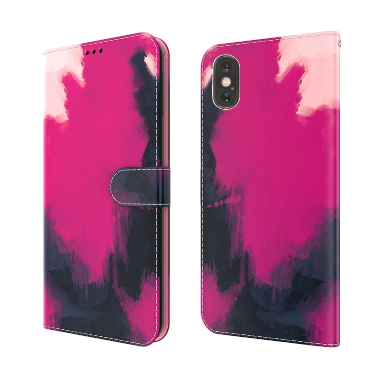 Estuche de Cuero para iPhone Xs Max Patrón de Acuarela con Tapa Horizontal, Soporte, Ranura para Tarjeta y Billetera (Baya)
