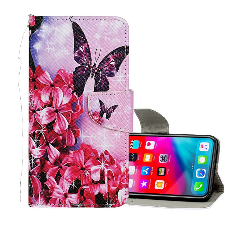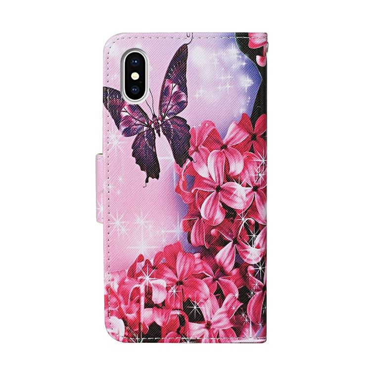 Estuche de Cuero para iPhone Xs Max con Tapa Horizontal Soporte Ranuras y Billetera (Mariposa de Flor Roja)