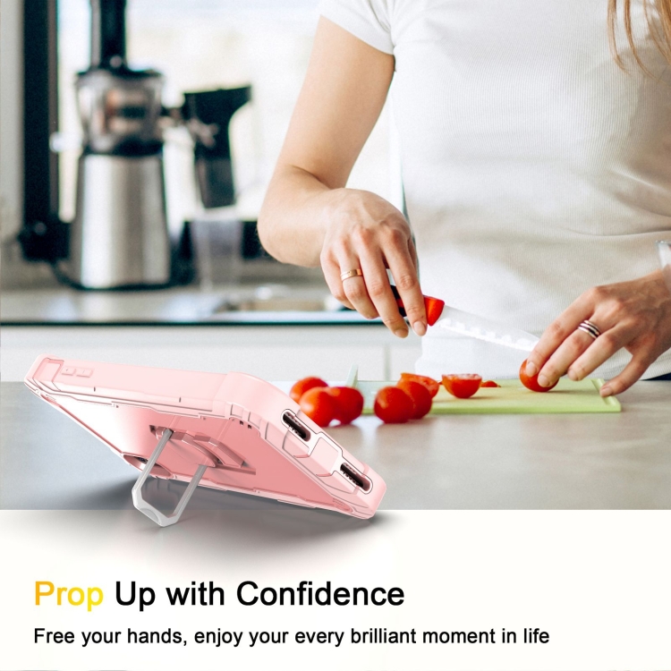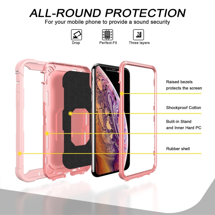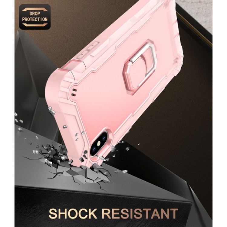Funda para iPhone Xs Max PC + Goma 3 Capas a Prueba de Golpes con Soporte Giratorio (Oro Rosa)