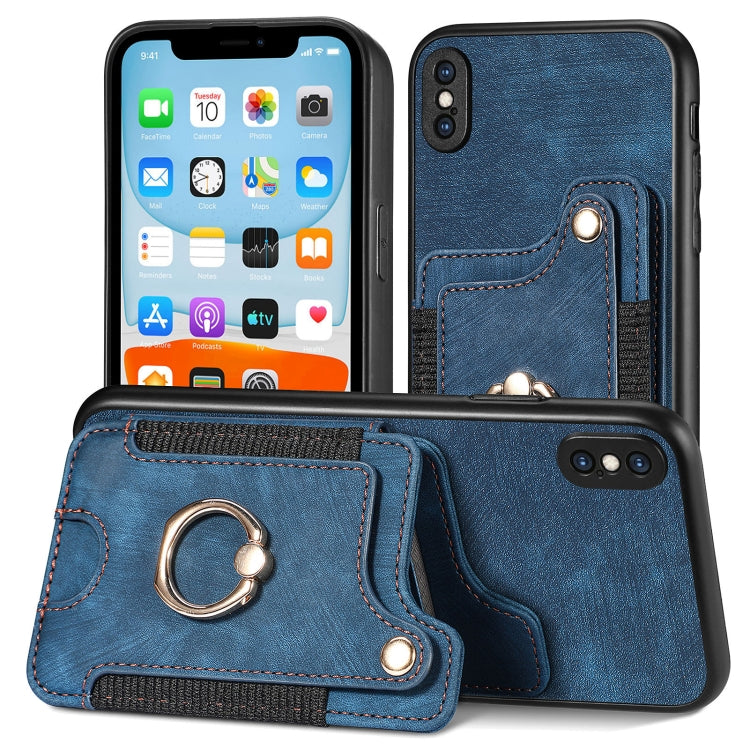 Funda para iPhone Xs Max Retro Skin-Feel Ring Multi-Card Wallet (Azul)