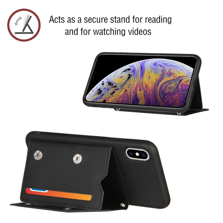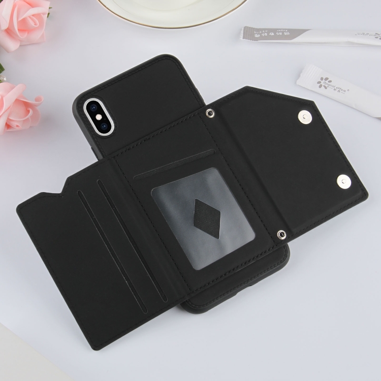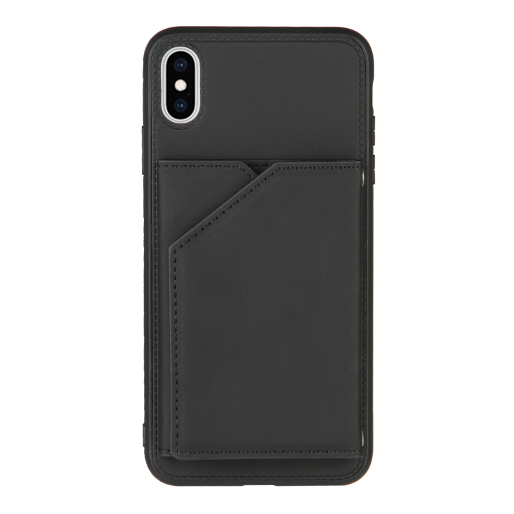 Funda para iPhone Xs Max Skin Feel PU TPU PC Contraportada Estuche a Prueba de Golpes con Ranuras para Tarjetas Soporte Marco de Fotos (Negro)