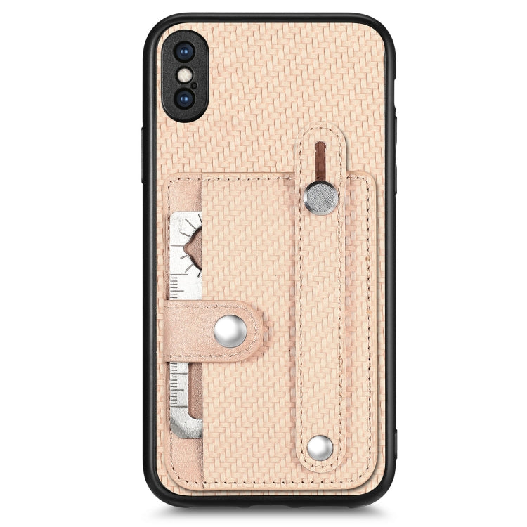 Funda para iPhone Xs Max Wristband Kickstand Card Wallet Back Cover Phone Case con Tool Knife (Khaki)