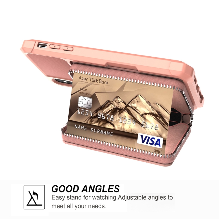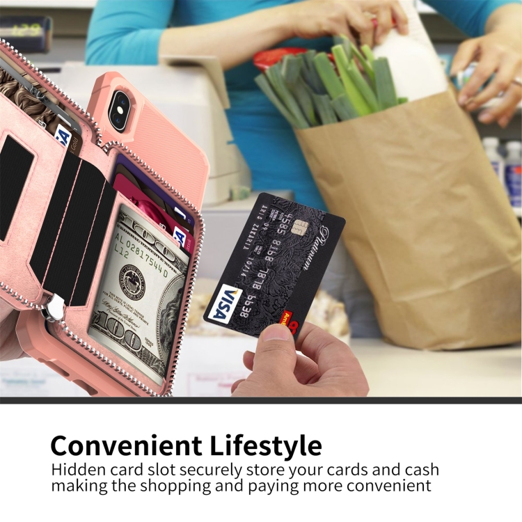 Funda para iPhone Xs Max Zipper Wallet Card Bag PU Back Case (Oro Rosa)