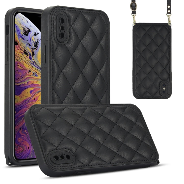 Estuche para Teléfono iPhone Xs / X Textura Rómbica con Cordón Doble (Negro)