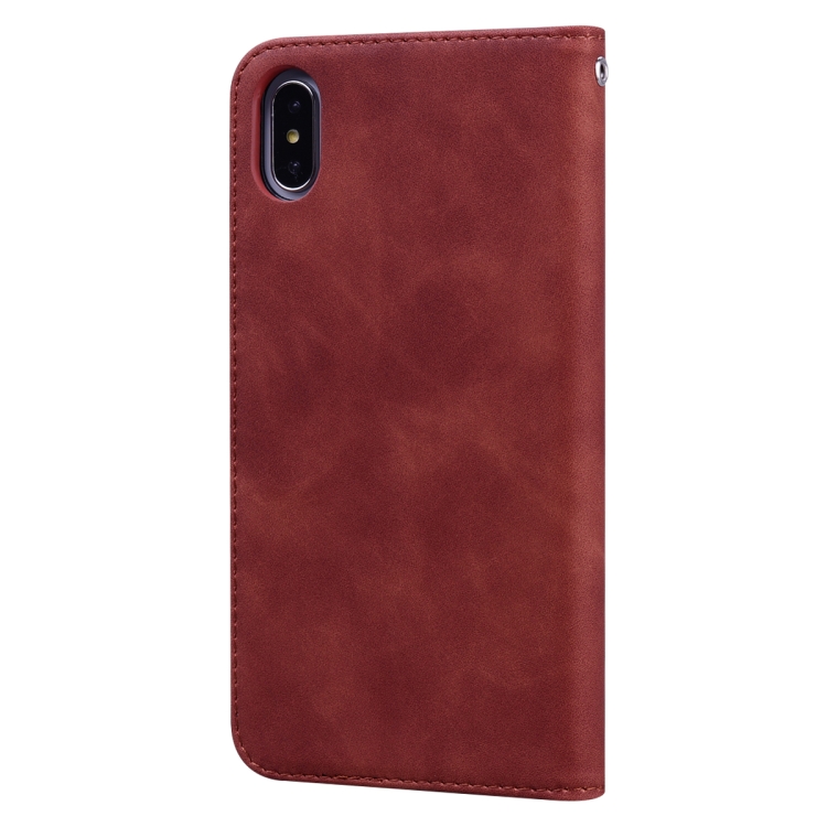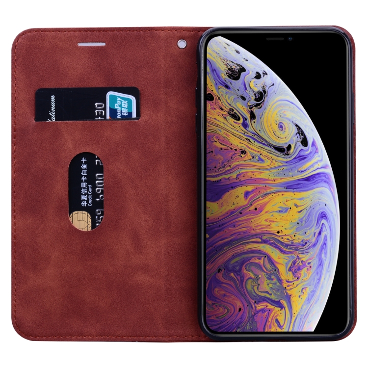 Funda de Cuero Pu para iPhone Xs / X con Tapa Horizontal Magnética Soporte Ranura Tarjeta Cordón (Marrón)