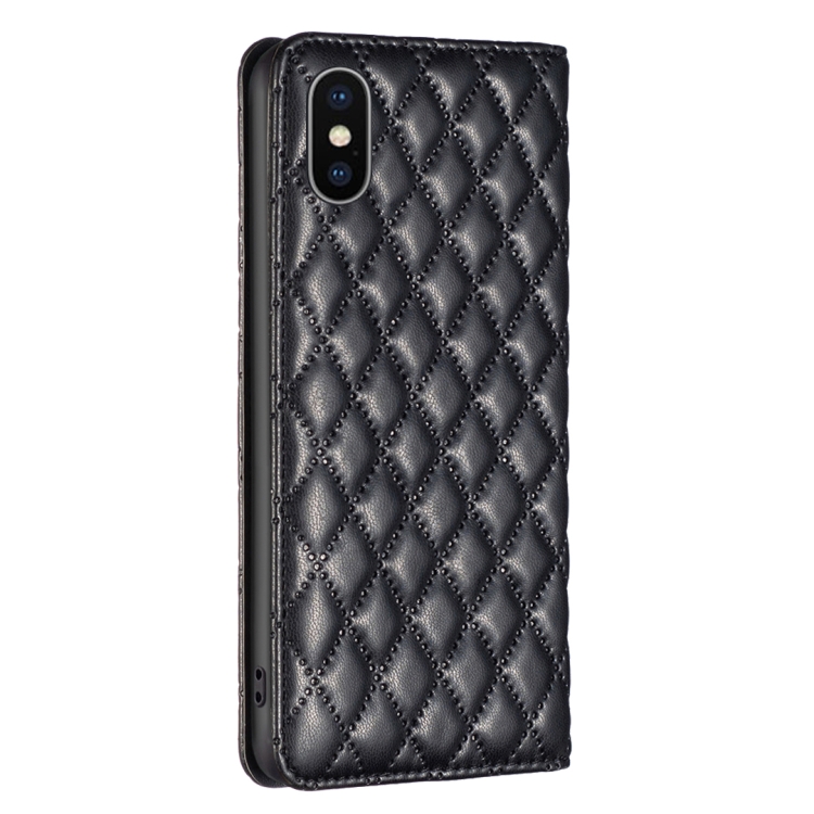 Funda de teléfono para iPhone Xs / X con tapa de cuero magnético Diamond Lattice (Negro)