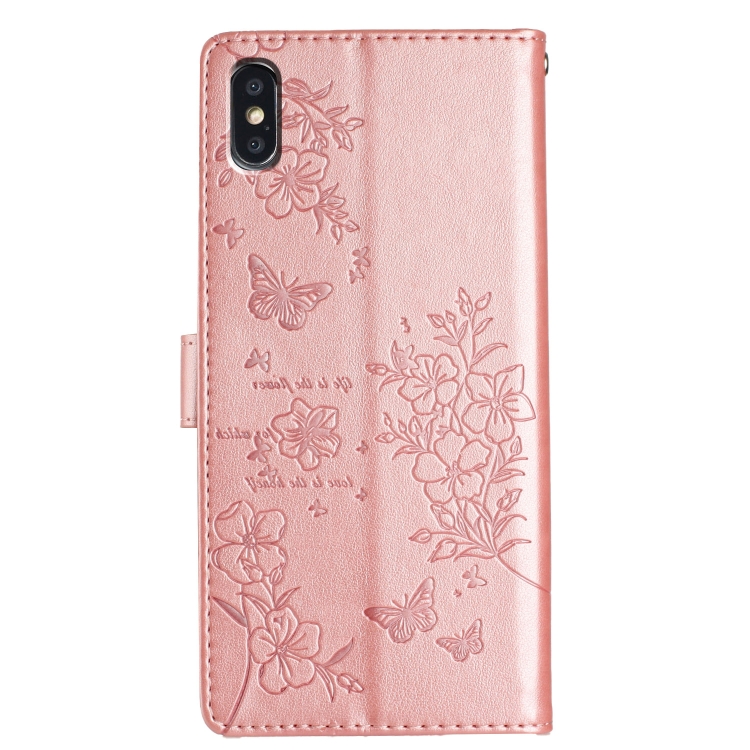 Funda para Teléfono iPhone Xs X Cuero Relieve Flor Amor Mariposa (Oro Rosa)