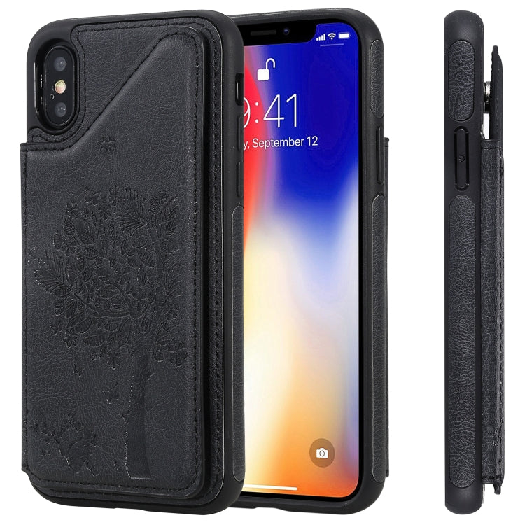 Funda Protectora para iPhone Xs / X con Patrón de Árbol de Gato, Ranuras para Tarjetas, Marco de Fotos y Soporte (Negro)