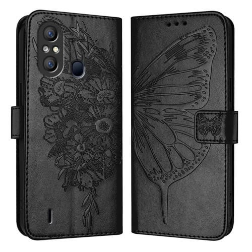 Funda de Cuero para Teléfono Itel A58 / A49 con Mariposa en Relieve (Negro)