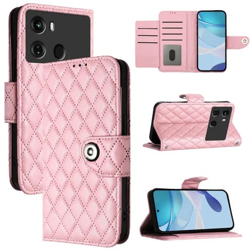 Funda para Itel P40 de Cuero con Tapa Textura Rómbica y Cordón (Rosa)