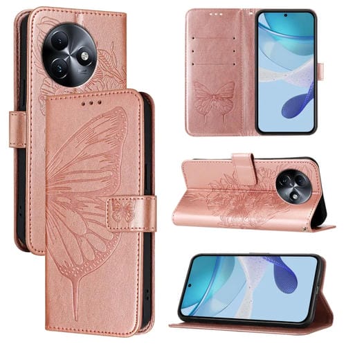 Funda de Cuero para Itel S24 con Mariposa en Relieve (Oro Rosa)