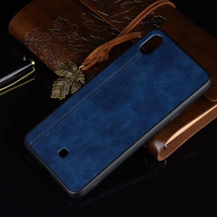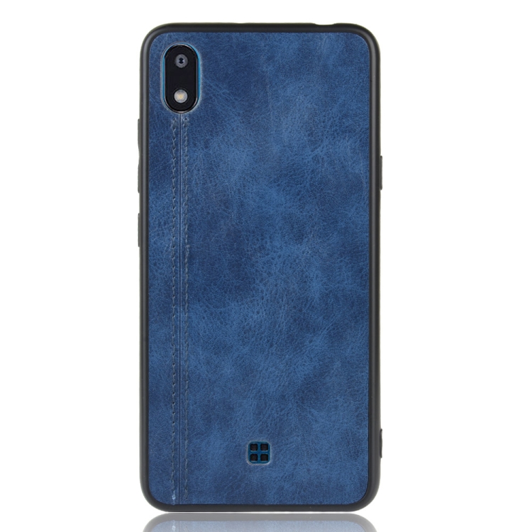 Funda para LG K20 (2019) PC + PU + TPU Patrón Piel de Vaca Costura Azul a Prueba de Golpes