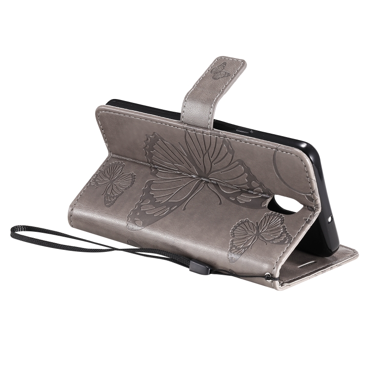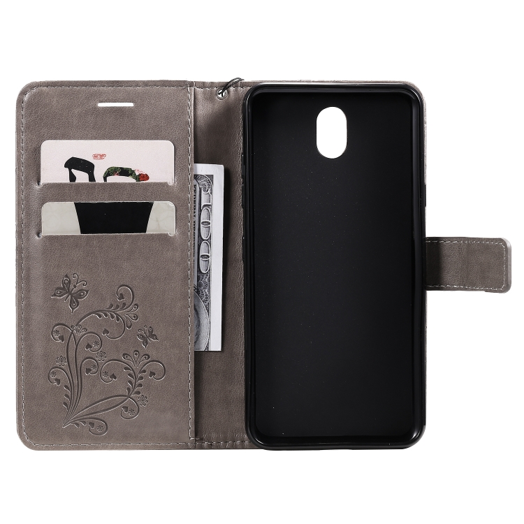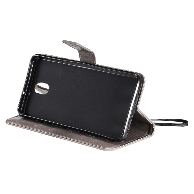 Estuche de Cuero PU para LG K30 con Tapa Horizontal, Soporte, Ranuras para Tarjetas, Billetera y Cordón (Gris)