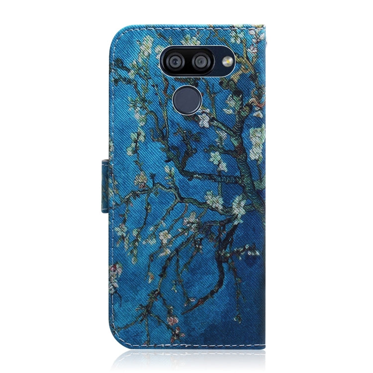 Estuche de Cuero Abatible Horizontal para LG K40S con Atracción Magnética, Soporte y Ranura para Tarjeta (Flor de Albaricoque)