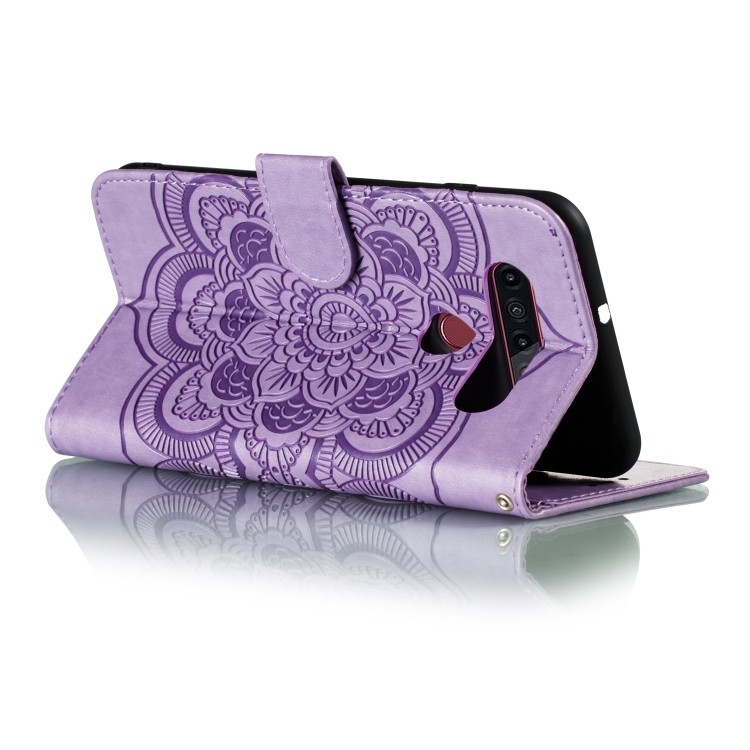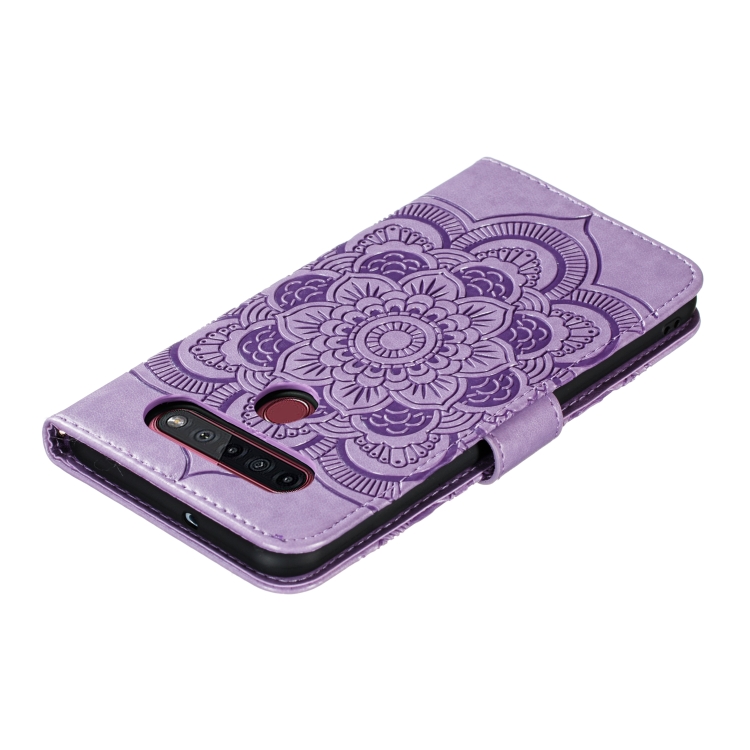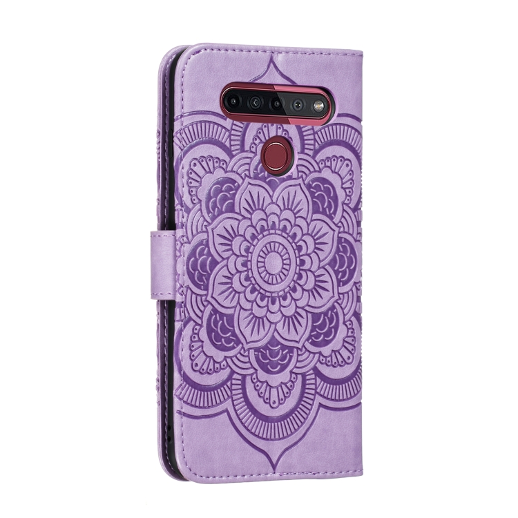 Funda para LG K41S K51S Mandala Relieve Cuero PU Tapa Horizontal Soporte Ranuras Tarjetas Cordón (Púrpura)