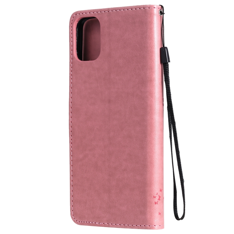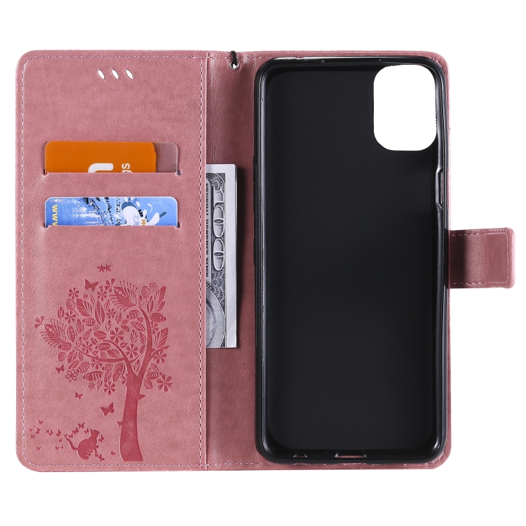 Funda de Cuero PU para LG K42 con Patrón Árbol y Gato, Flip Horizontal, Soporte, Billetera y Cordón (Rosa)
