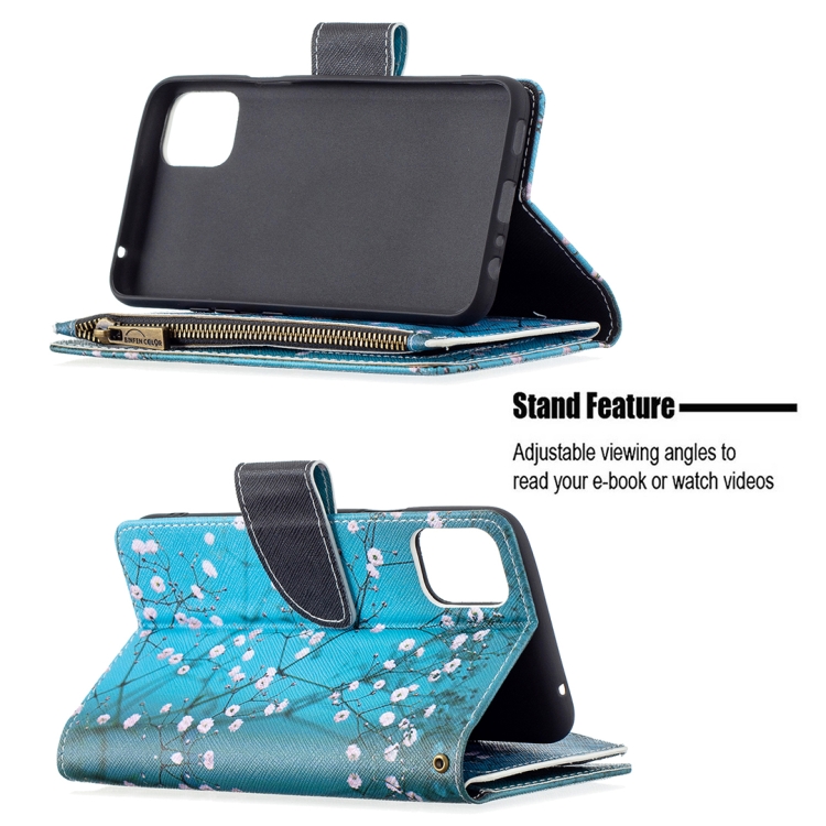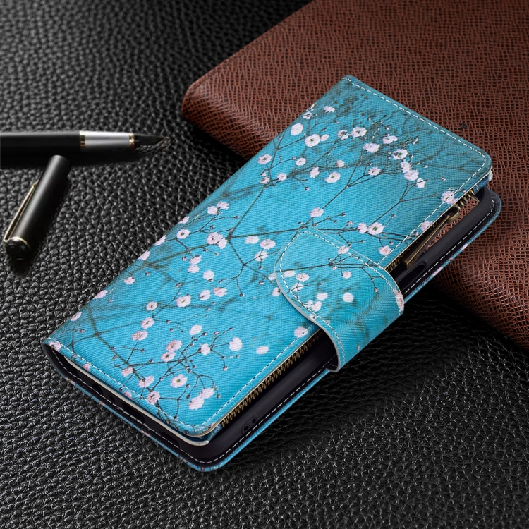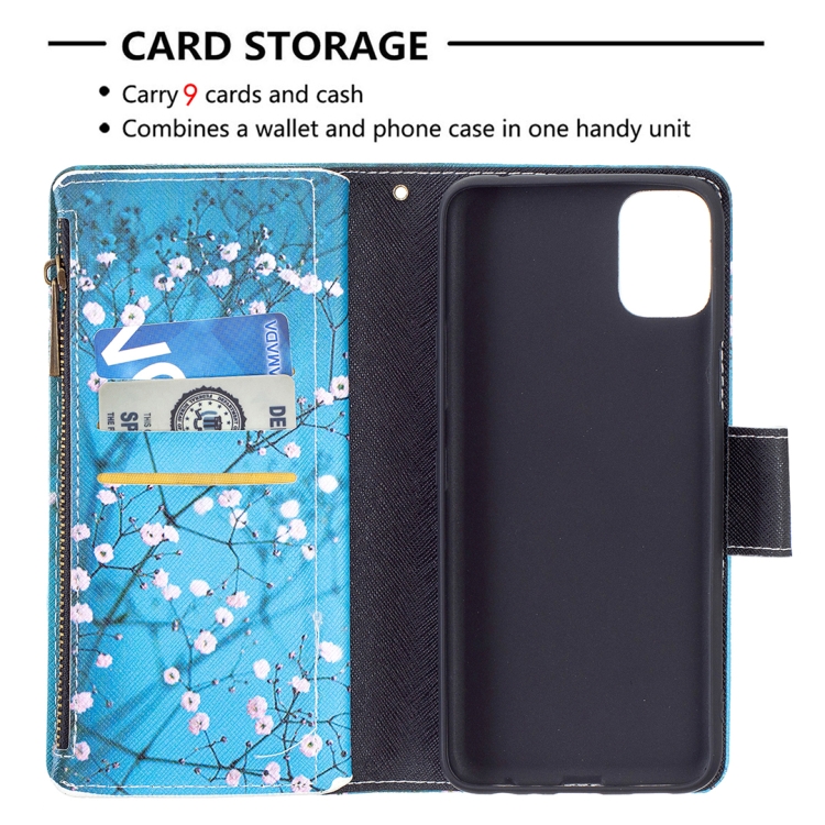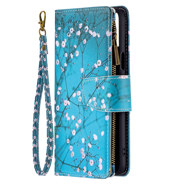 Funda Horizontal Flip para LG K42 con Cremallera, Soporte, Ranuras para Tarjetas y Billetera (Flor de Ciruela)
