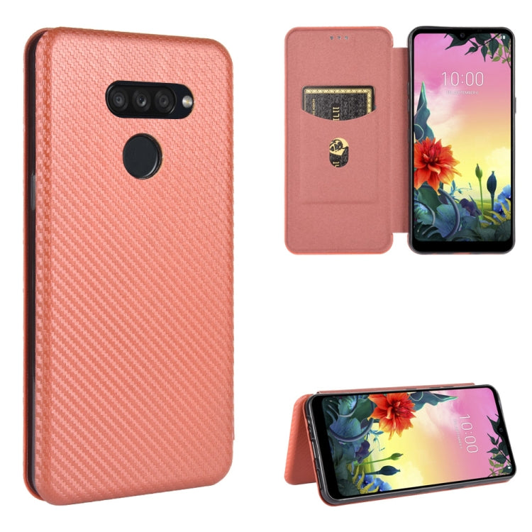 Funda de Cuero para LG K50S con Tapa Magnética Horizontal y Ranura para Tarjeta (Marrón)