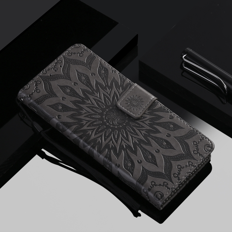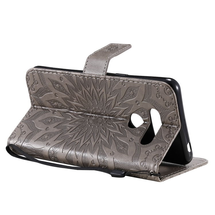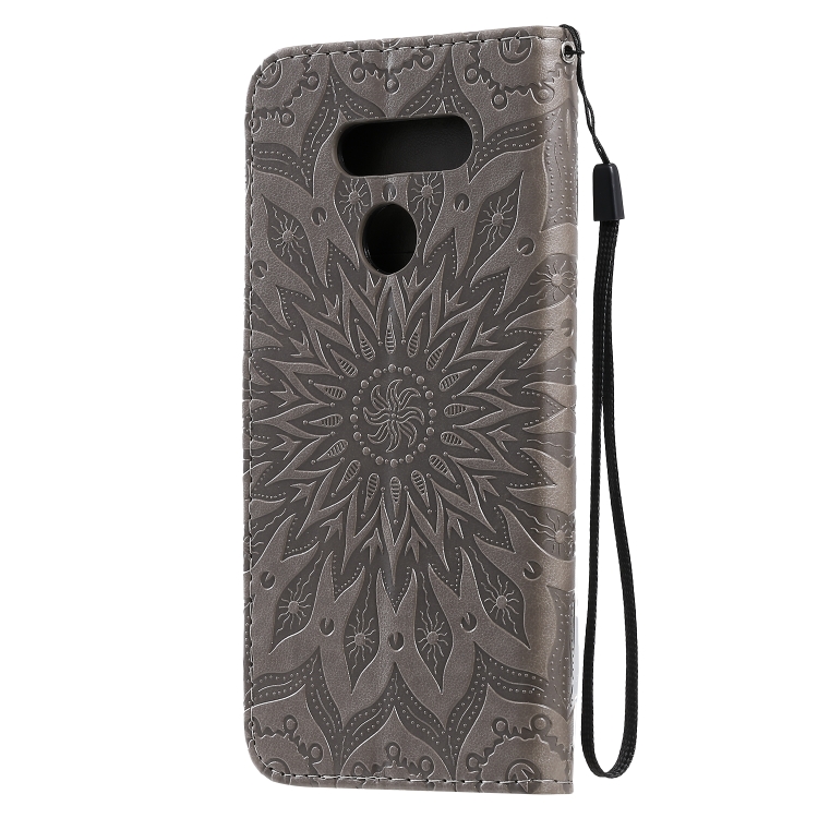 Funda Cuero PU para LG K50S con Tapa Horizontal, Soporte, Ranuras y Cordón (Gris)
