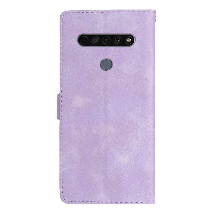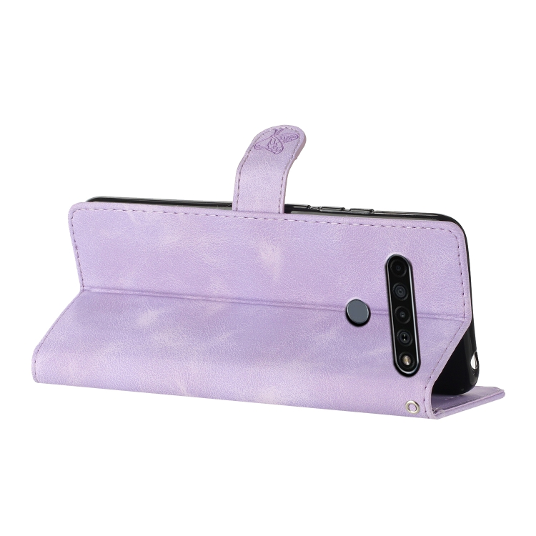 Funda de Cuero para LG K51S con Flor Mariposa y Relieve Patrón (Púrpura)