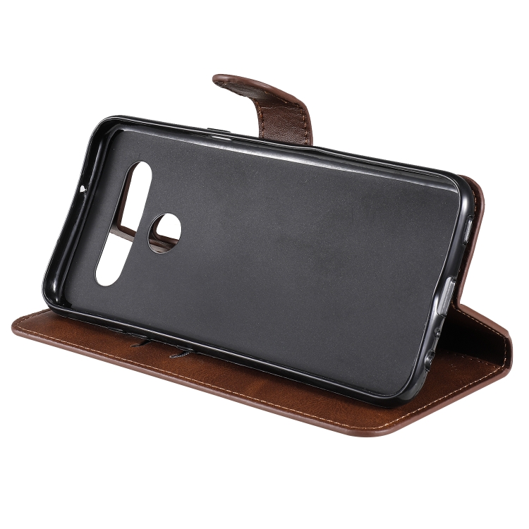 Funda de Cuero Classic Calf para LG K51S / Q51S con Tapa Horizontal, Soporte y Ranuras (Marrón)