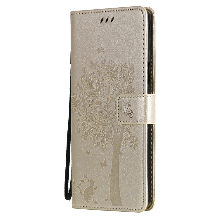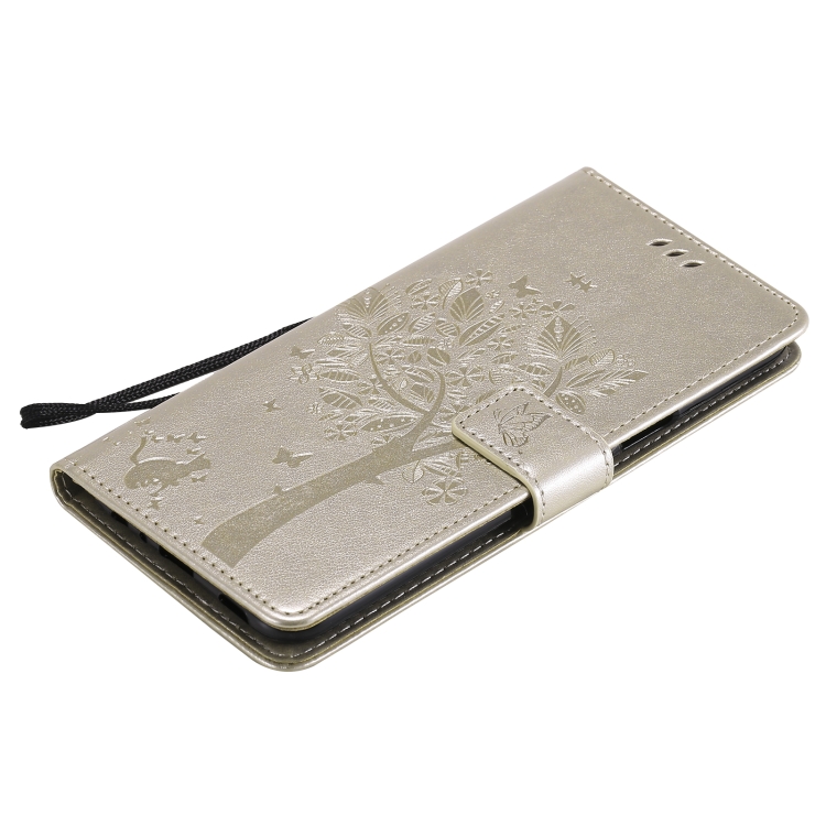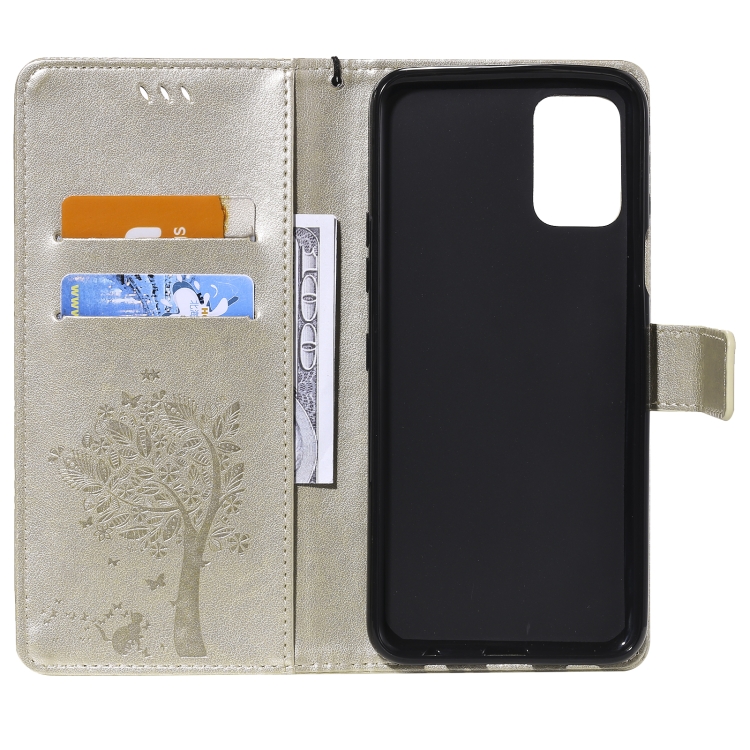 Funda de Cuero PU para LG K52 con Soporte, Ranuras para Tarjetas y Cordón (Oro)