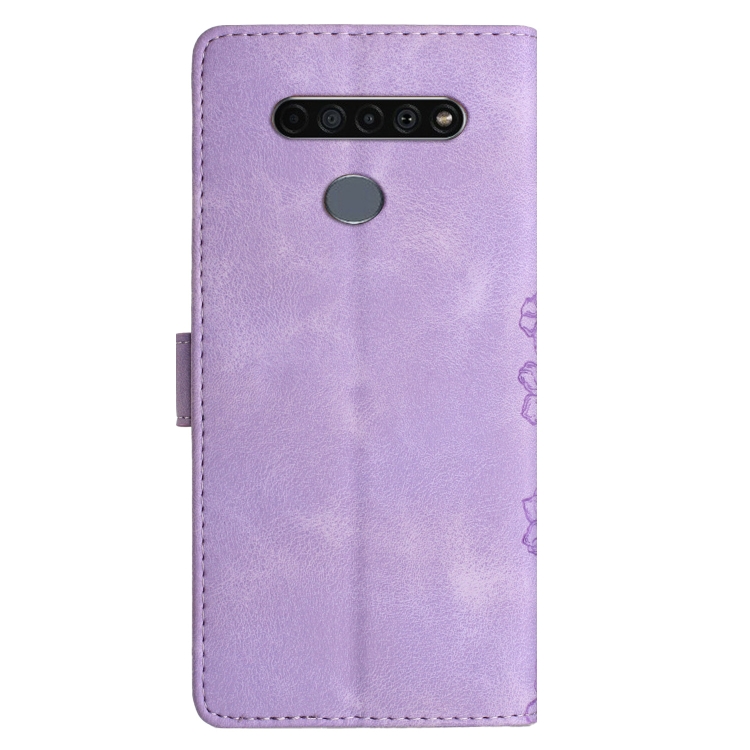 Funda para LG K61 Cherry Blossom Butterfly Skin Feel de PU en Relieve (Púrpura)