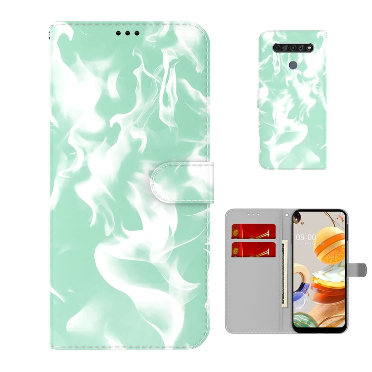 Funda de Cuero para LG K61 Cloud Fog Stattern con Soporte y Ranura para Tarjeta y Billetera (Menta Verde)