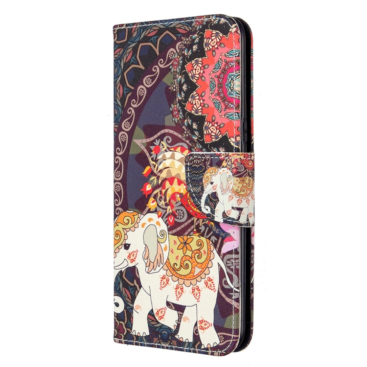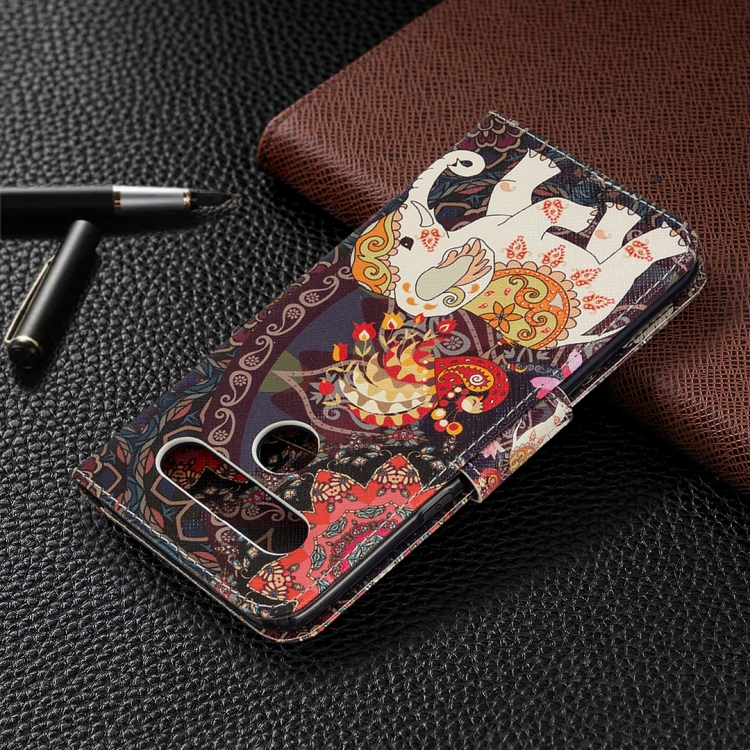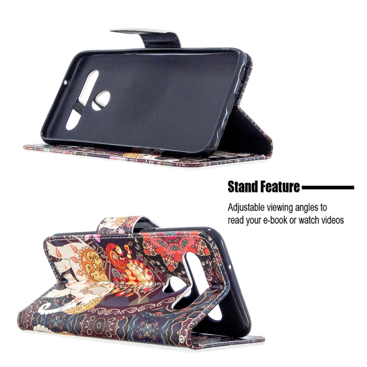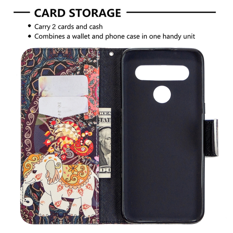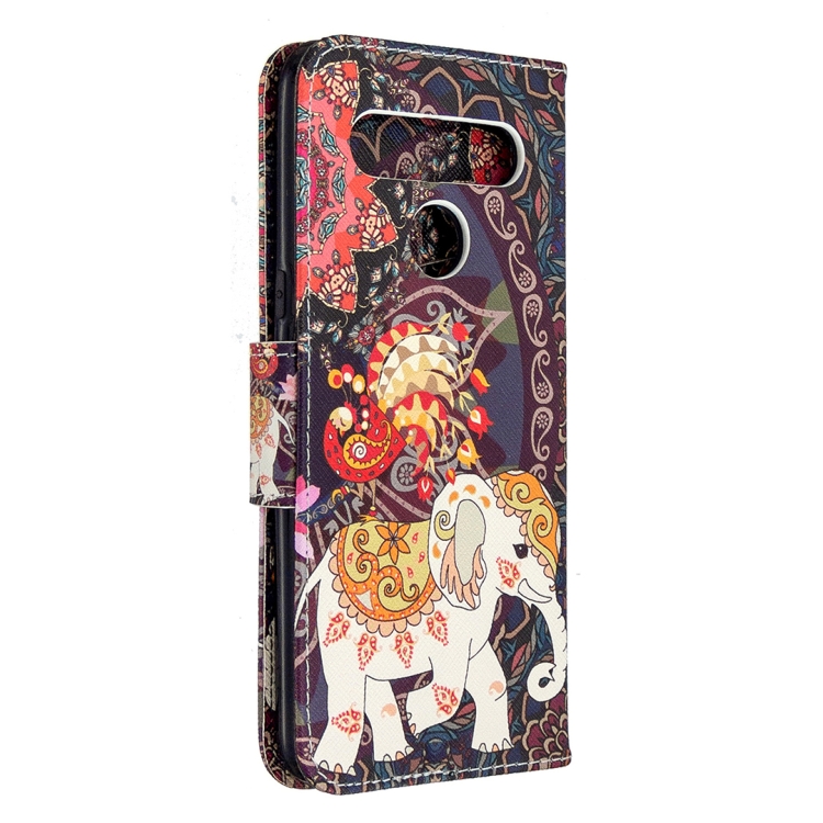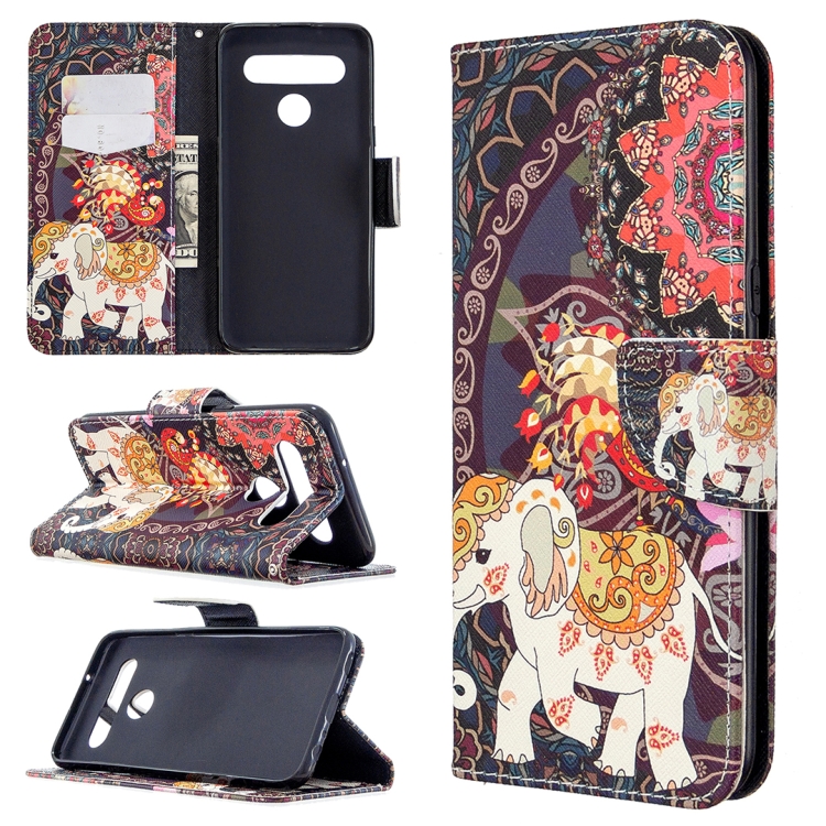Estuche de Cuero para LG K61 con Tapa Horizontal, Soporte, Ranuras para Tarjetas y Billetera (Flores y Elefante)