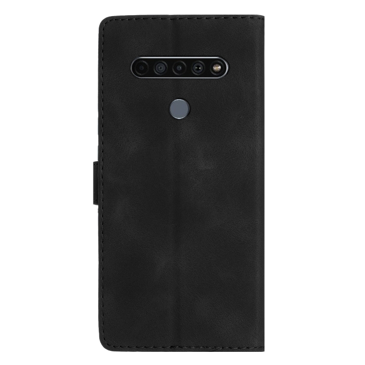 Funda de Cuero para LG K61 con Flor y Mariposa en Relieve (Negro)