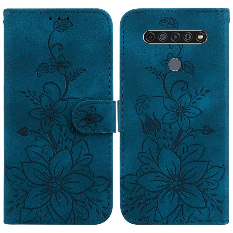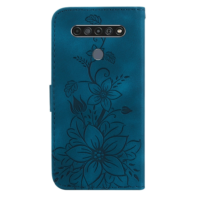 Funda de Cuero con Relieve Lily para LG K61 (Azul Oscuro)