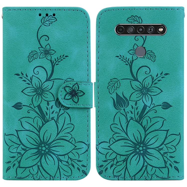 Funda de Cuero con Relieve Lily para LG K61 (Verde)