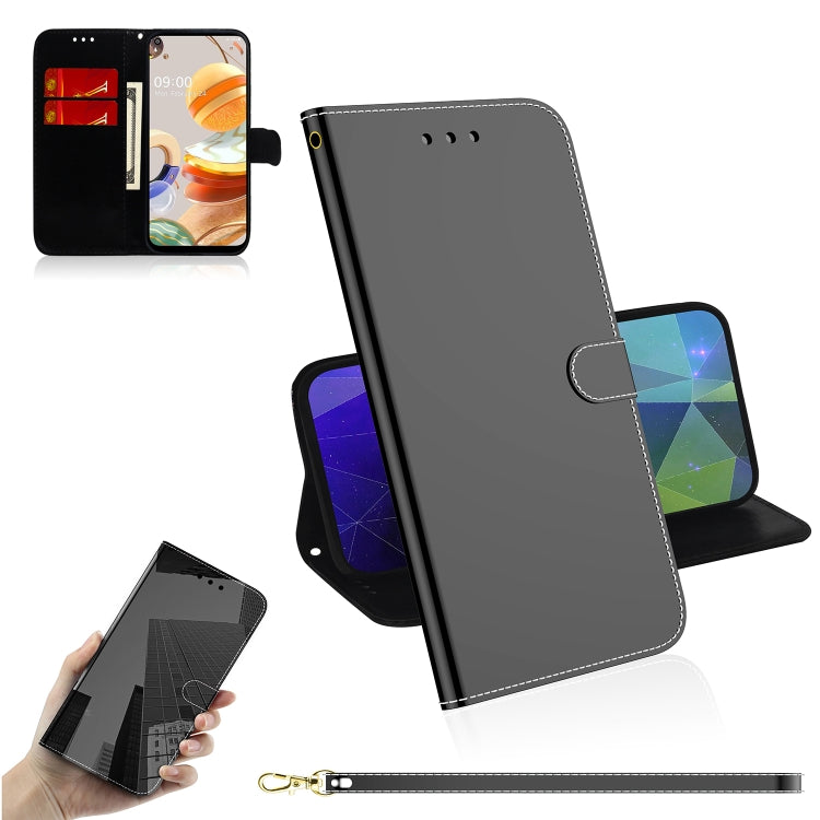 Funda de Cuero para LG K61 Limited Mirror Surface con Tapa Horizontal, Soporte, Ranuras para Tarjetas y Cordón (Negro)