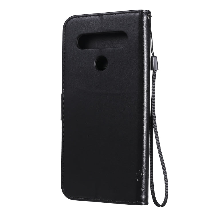 Funda de Cuero para LG K61 Tree & CAT con Tapa Horizontal, Patrón En Relieve, Soporte, Ranuras para Tarjetas y Cordón (Negro)