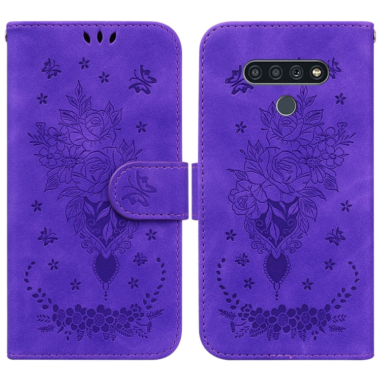 Funda de Cuero para LG K71 Stylo 6 con Relieve de Mariposa (Púrpura)