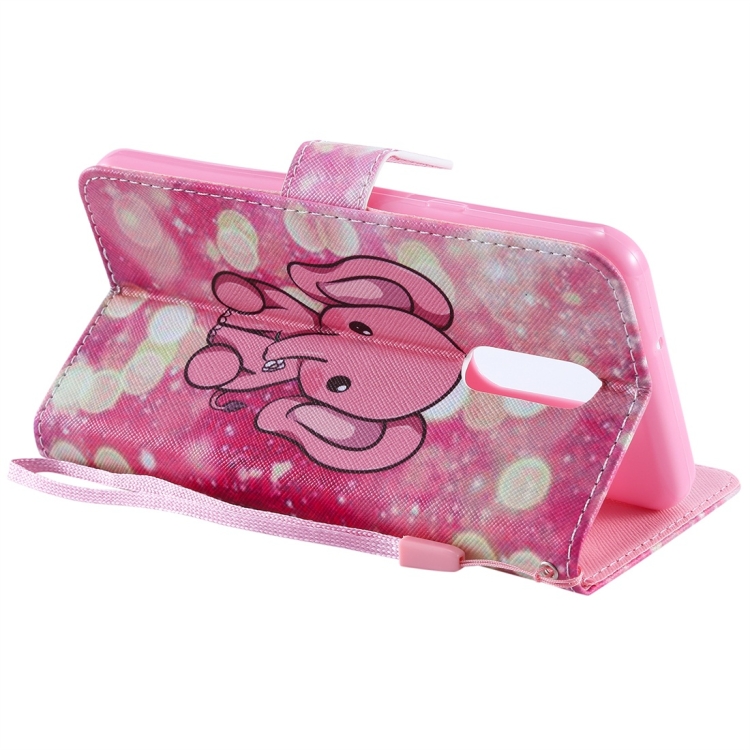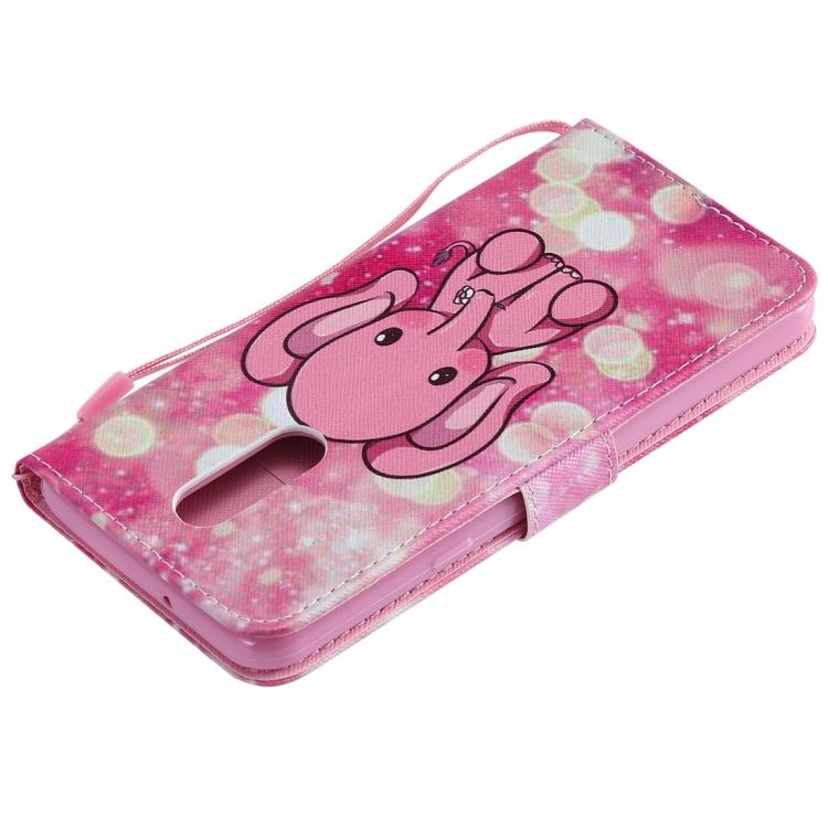 Estuche de Cuero para LG Stylo 5 con Tapa Horizontal, Billetera, Soporte, Ranuras y Cordón (Elefante Rosa)