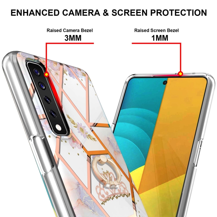 Funda LG Stylo 7 TPU Electrochaplating Patrón Flores Mármol Soporte Anillo (Corona Imperial)