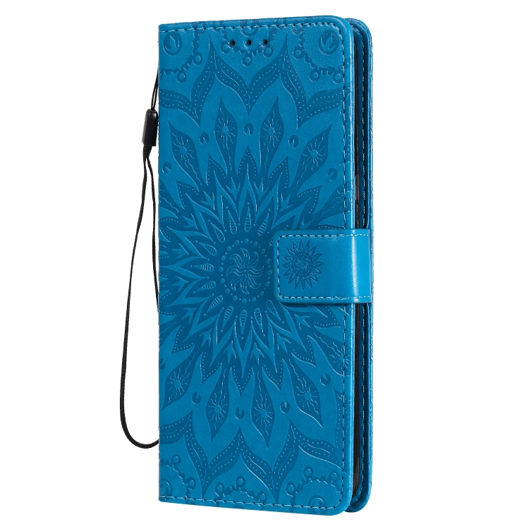 Funda Cuero PU LG V60 Thinq 5G con Diseño Girasol, Soporte, Ranuras y Cordón (Azul)