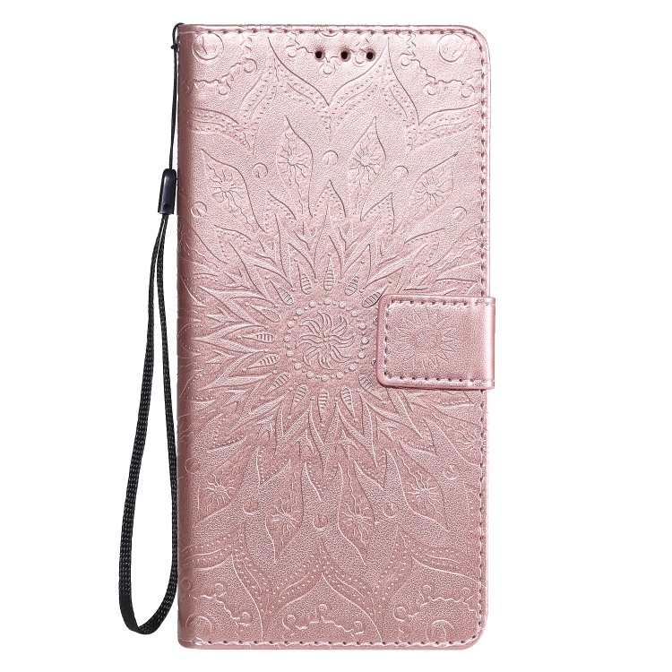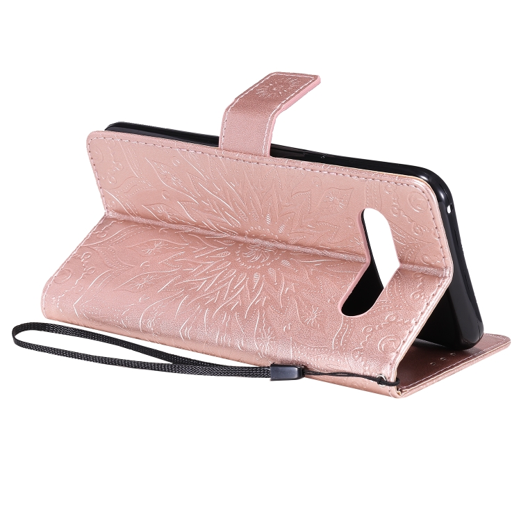 Funda Cuero Pu LG V60 Thinq 5G con Diseño Girasol, Soporte, Ranuras y Cordón (Oro Rosa)
