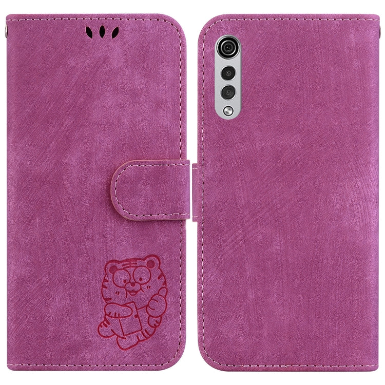 Funda de Cuero para LG Velvet 4G 5G G9 con Relieve Little Tiger (Rojo Rosa)