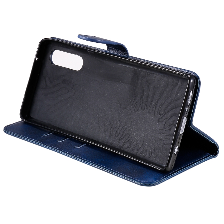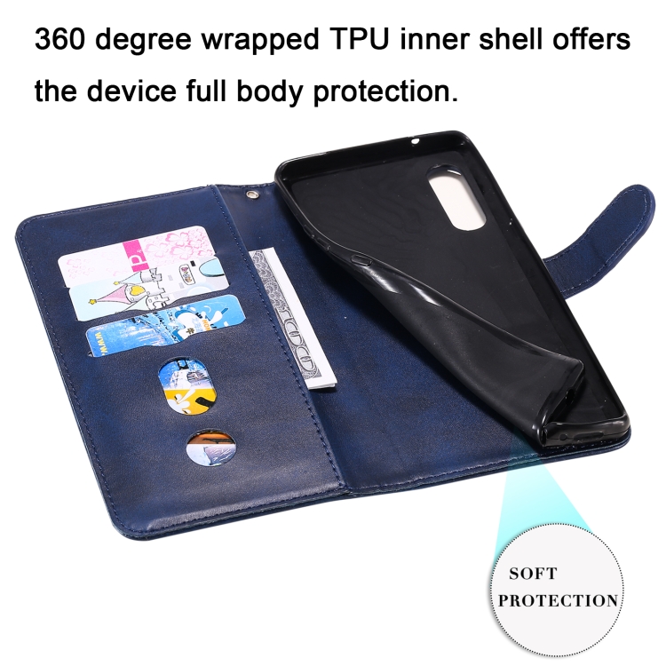 Estuche de Cuero para LG Velvet con Cierre Cremallera, Soporte, Ranuras y Billetera (Azul)