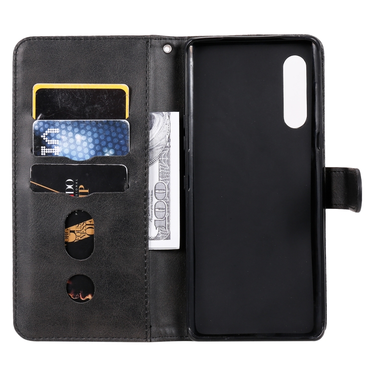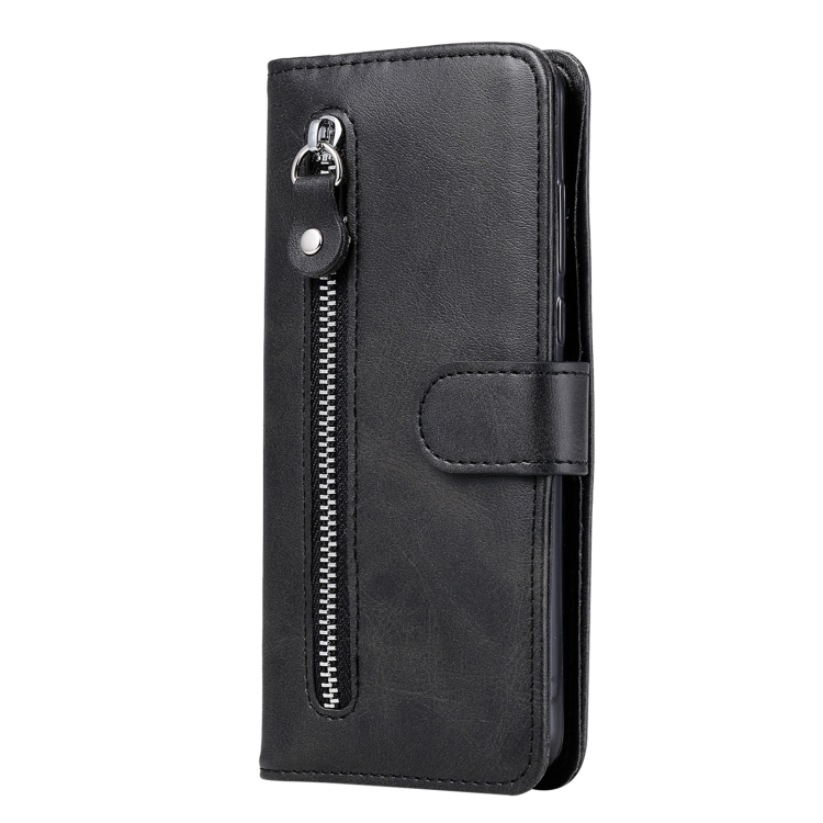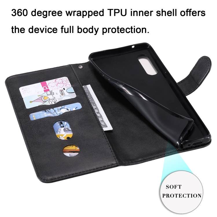 Estuche de Cuero para LG Velvet con Cierre Cremallera, Soporte, Ranuras y Billetera (Negro)