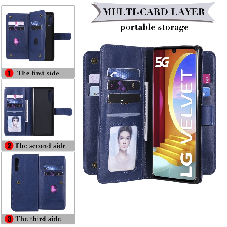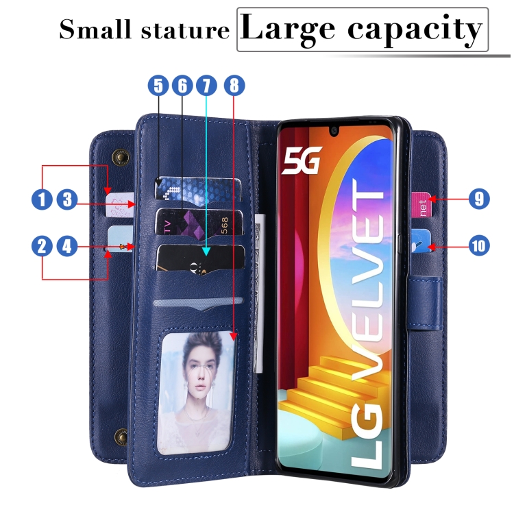 Funda de Cuero para LG Velvet / G9 con Hebilla Magnética, 10 Ranuras y Soporte (Oro Rosa)