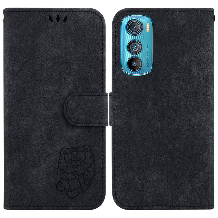 Funda para Motorola Edge 30 de Cuero con Relieve Little Tiger (Negro)