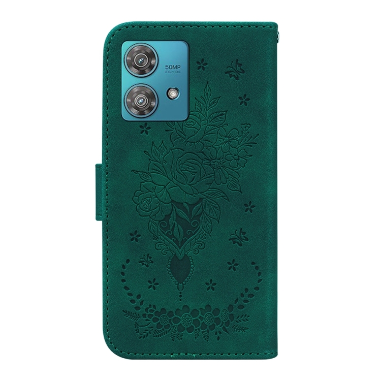 Funda de Cuero para Motorola Edge 40 Neo Butterfly Rose en Relieve (Verde)
